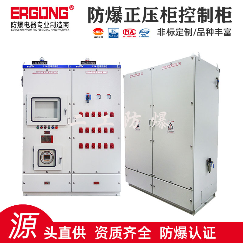 1.防爆正压柜在自动控制系统的控制下,正压腔内压力高于正压腔外的压力,形成微正压的安全小环境,从而阻止了可燃性危险气体进入正压腔内,对于内装的普通仪表和电器元件产生的电弧、火花进行完全的隔离,保障了现场的安全允许。